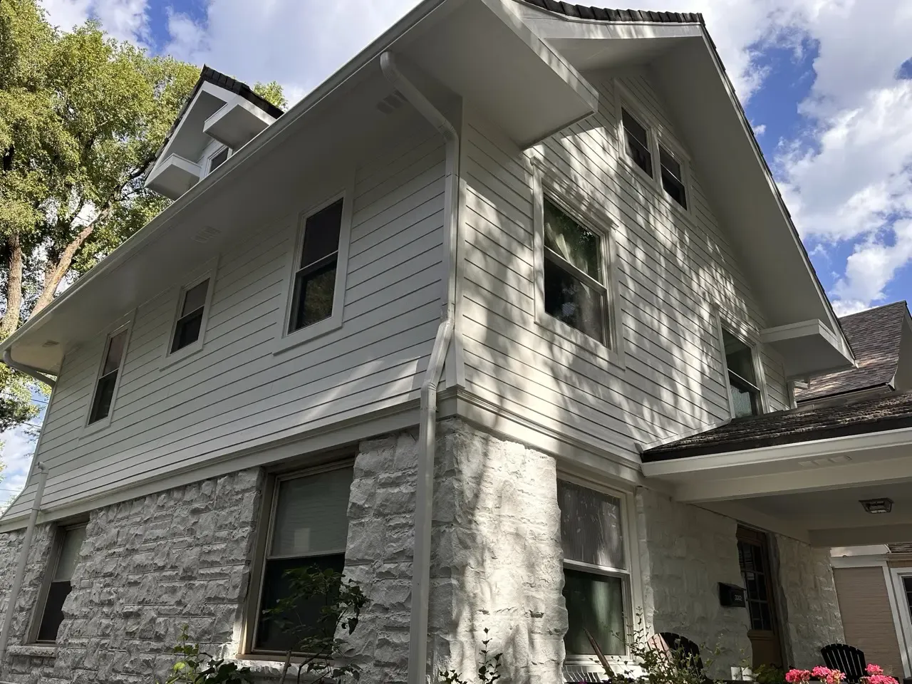Having a low-maintenance home began to feel like wishful thinking for the owners of this aging two-story house in Kansas City. The 20-year-old vinyl siding had become tattered due to storms and hail damage. The soffits were rotting as well. The damaged exterior was not only unsightly but was allowing additional damage to occur beneath the surface, rather than protecting their home’s integrity.